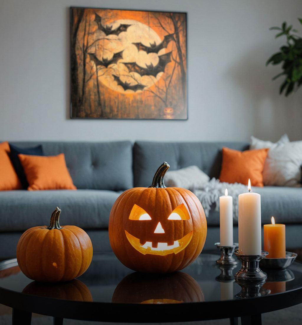 From jack-o’-lantern glow to autumn tones, create a cozy Halloween atmosphere with striking wall art.